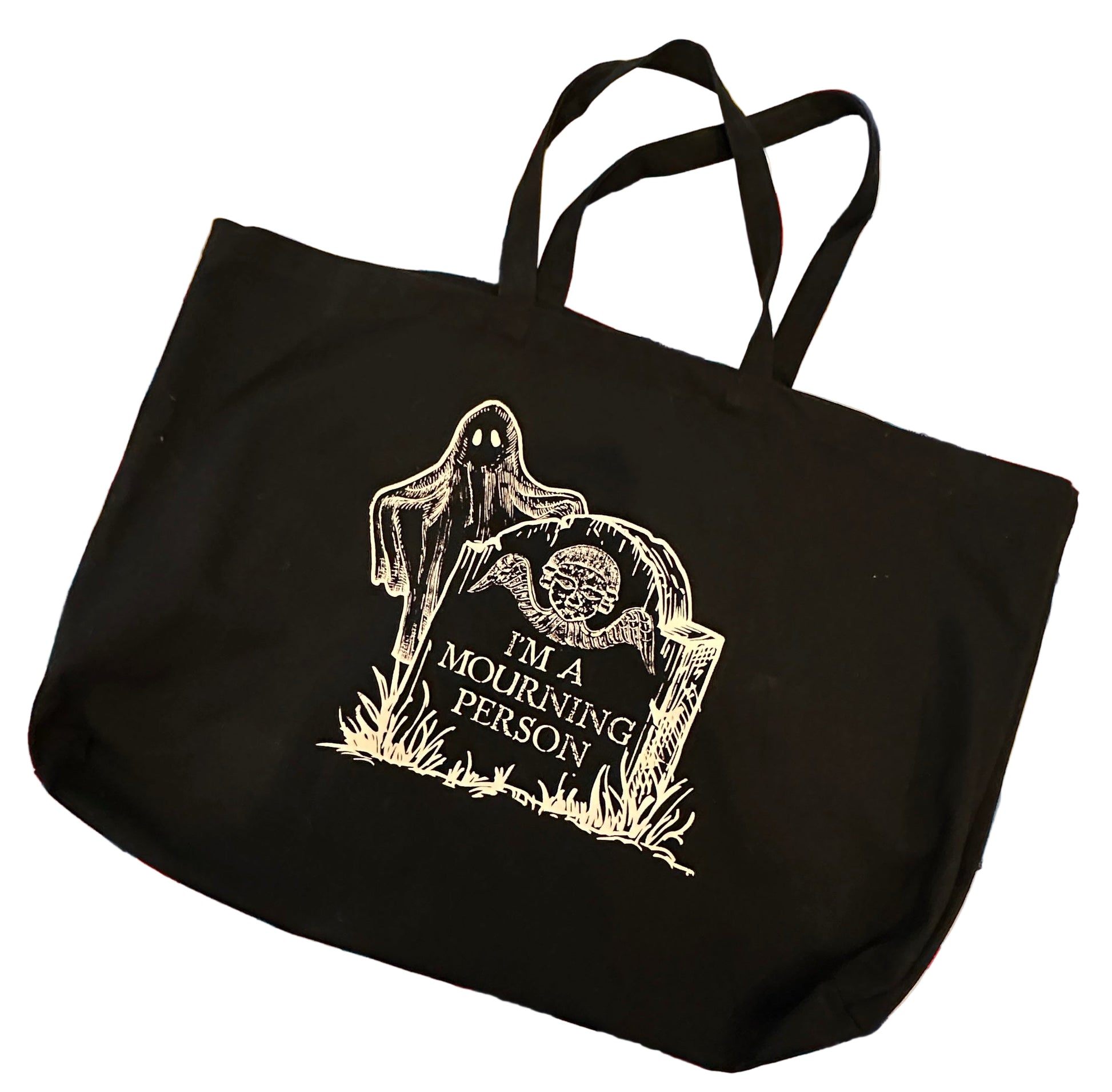 This tote is totally perfect for someone who's not a morning person but who is a mourning person. It glows-in-the-dark in a brilliant green tone so that all the ghosts know where you are at.
